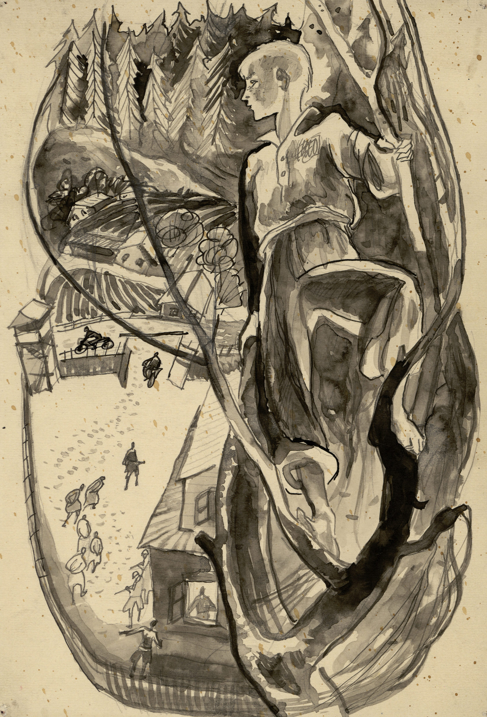 Рисунок "Партизан-разведчик". Тушь, перо. 1960-1969 гг.